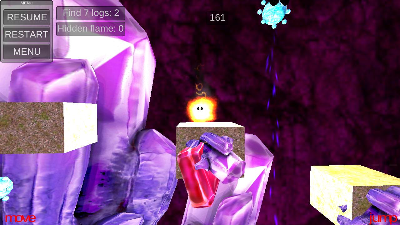 Su misión es ayudar flamo a viajar y explorar el mundo de las cuevas de cristal, derrotar a los monstruos de agua para finalmente llegar a su hogar en el bosque de fogatas. Recuerde recolectar cada registro que veas para mantener flamo fuerte y estar atento a los tesoros ocultos.
